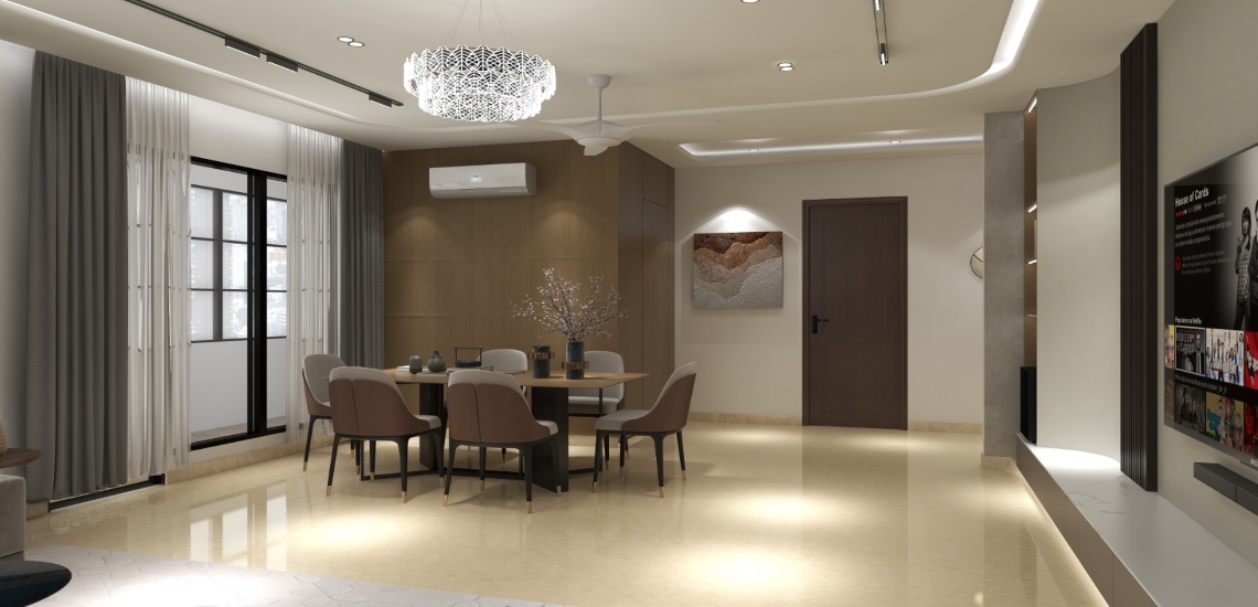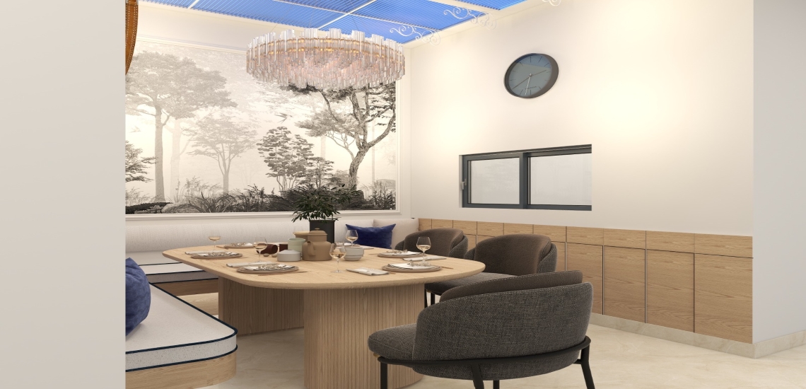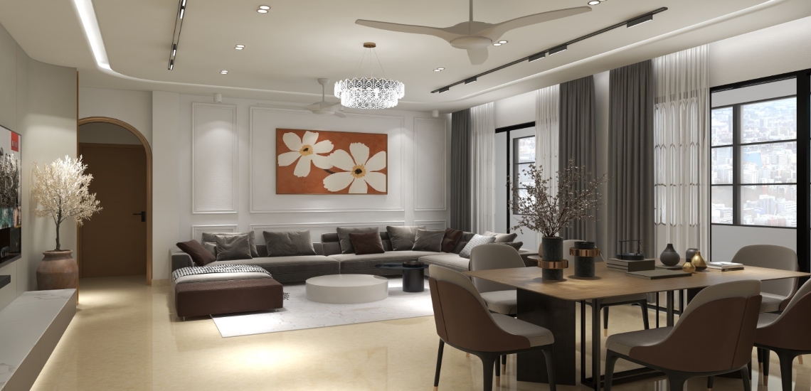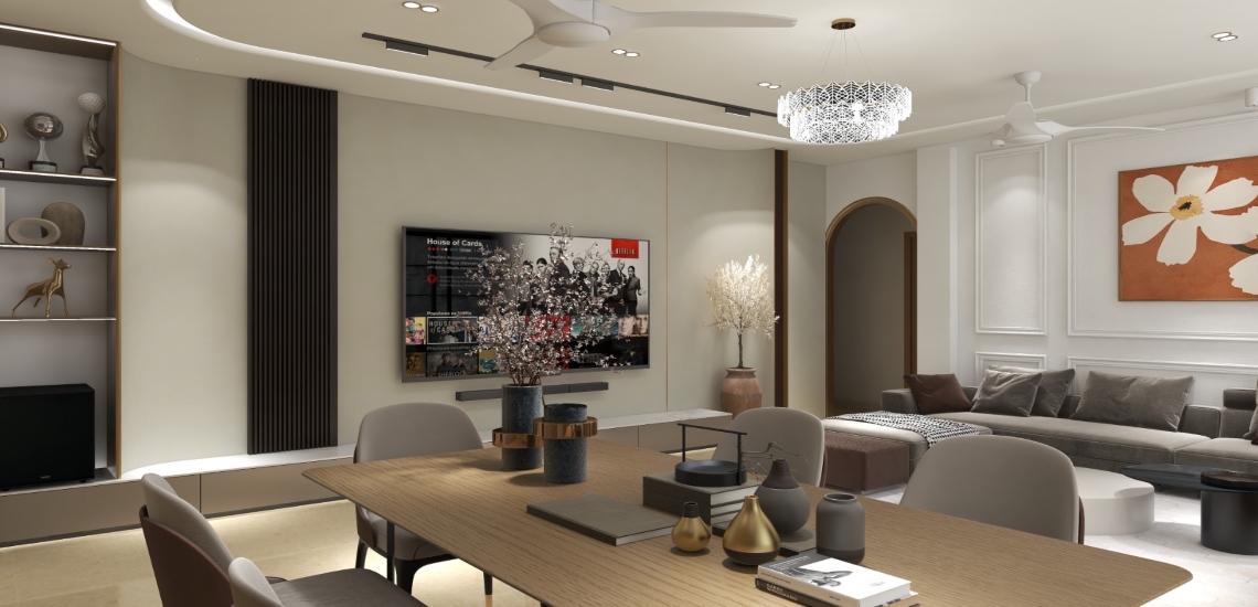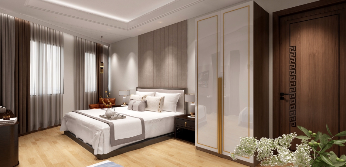This luxurious three-story residence, designed and constructed by Quba Studio, showcases a perfect blend of modern elegance and classic architectural elements. The façade features clean lines, grand arches, and expansive glass windows, exuding sophistication. Inside, the interiors are thoughtfully curated with a seamless integration of contemporary design, warm lighting, and premium finishes, creating a harmonious living space that combines comfort with style.